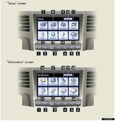 By touching the screen with your finger, you can control the audio system, air conditioning and adjust the screen display, etc. For details, see the Owner’s Manual.